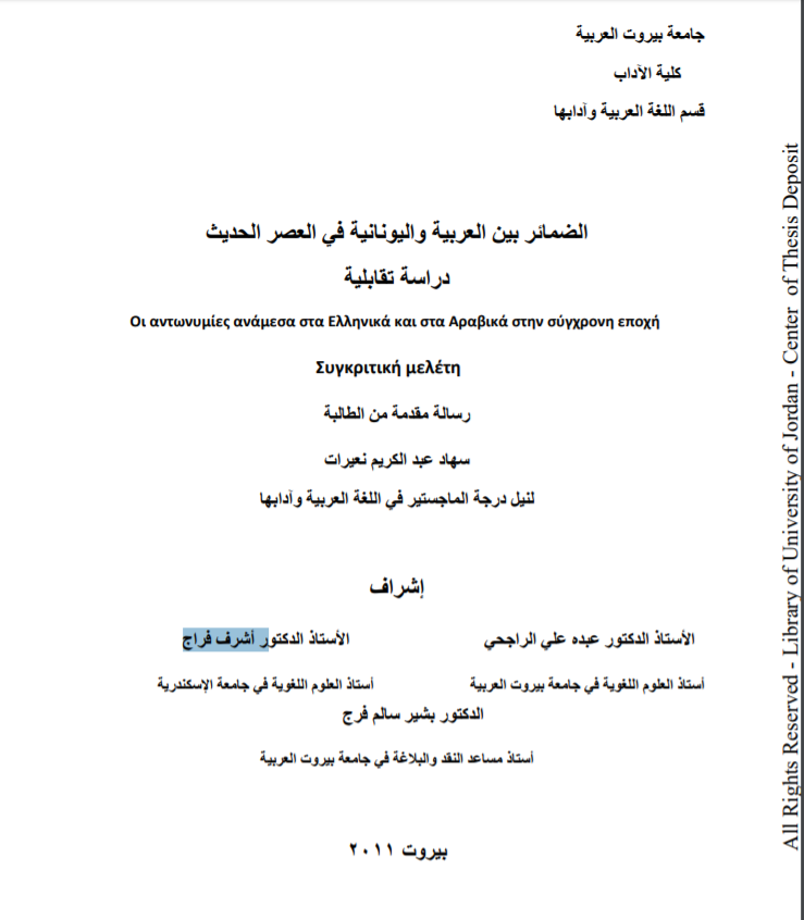 Pronouns in Modern Greek and Arabic: A Comparative Linguistical Study, MA thesis, Beirut 2011